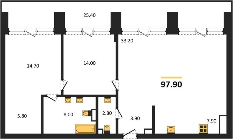 Площадь от 55.8 м2