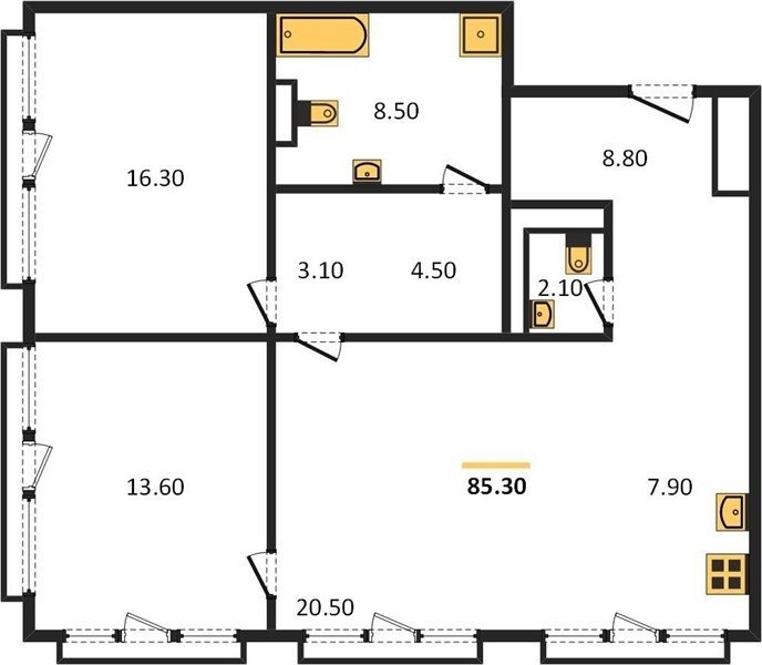 Площадь от 85.3 м2