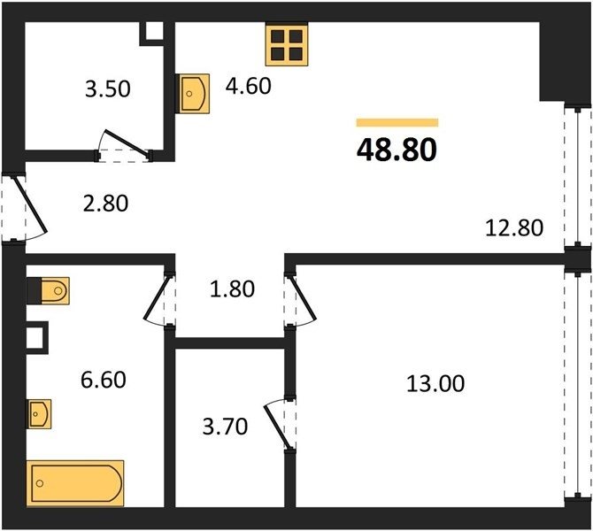Площадь от 45.3 м2